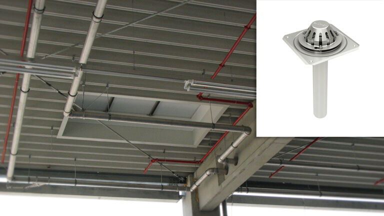 BLÜCHER® Drain Roof omfatter takavløp, rør og deler i rustfritt stål. I kombinasjon med BLÜCHER® EuroPipe push-fit rørsystem i rustfritt stål, utgjør BLÜCHER® avløpstak et komplett takdreneringssystem i rustfritt stål. Systemet kan brukes til alle typer flate tak med takpapp eller ett-lags takmembran, og er like egnet for tyngdekrafts- og vakuum- eller hevertsystemer.